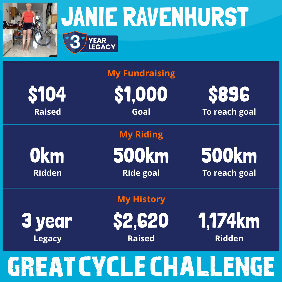460 km Ridden$1,067 Raised2023