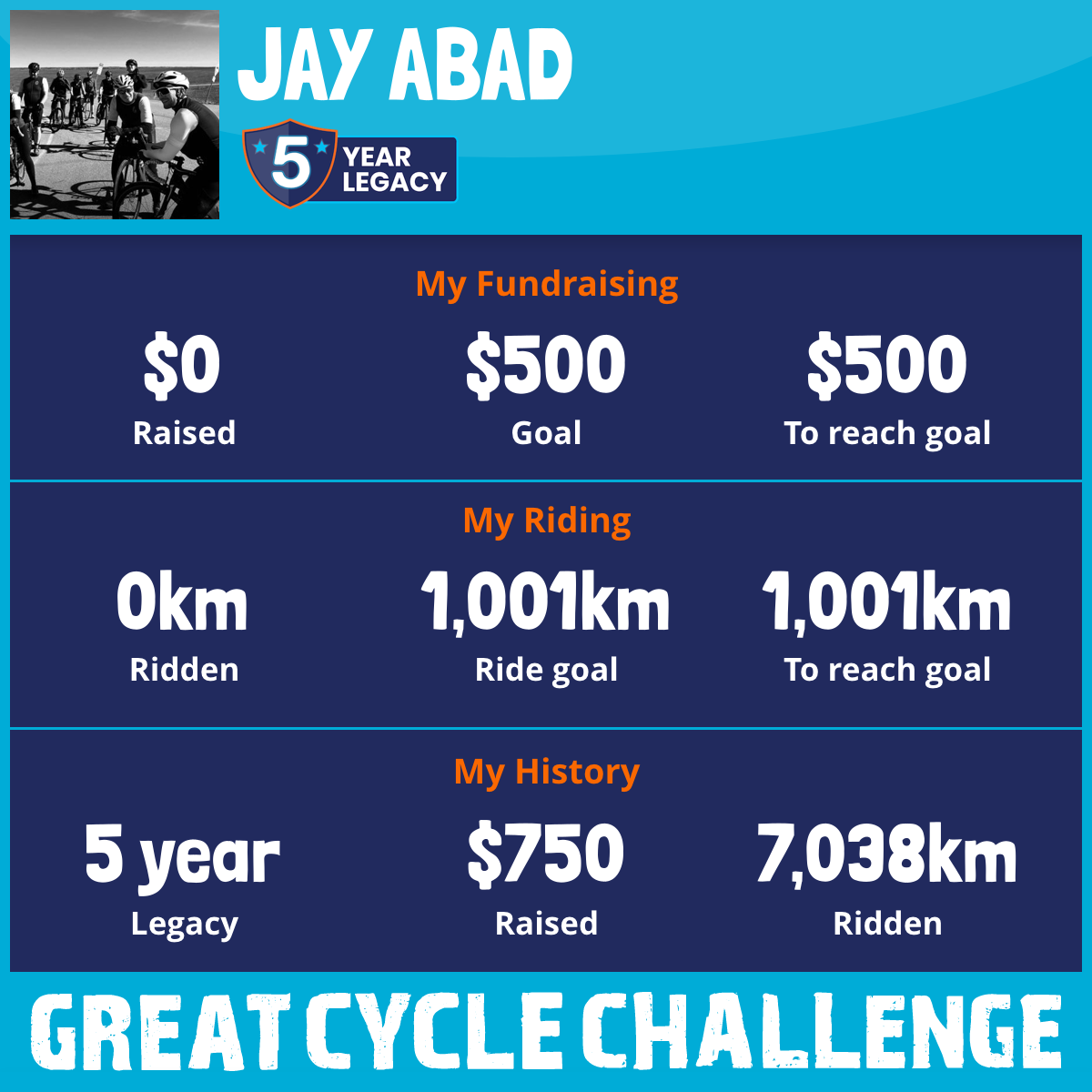 I am riding 1,001 km for Joaquin Abad. Please sponsor me and support my challenge to fight kids' cancer and save little lives.