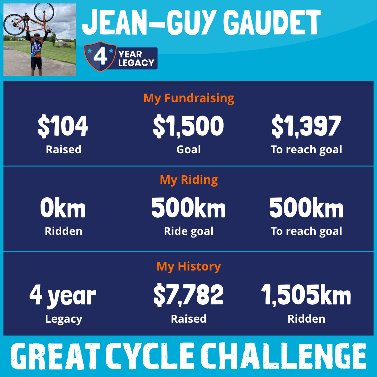 500 km Ridden$1,394 Raised2019