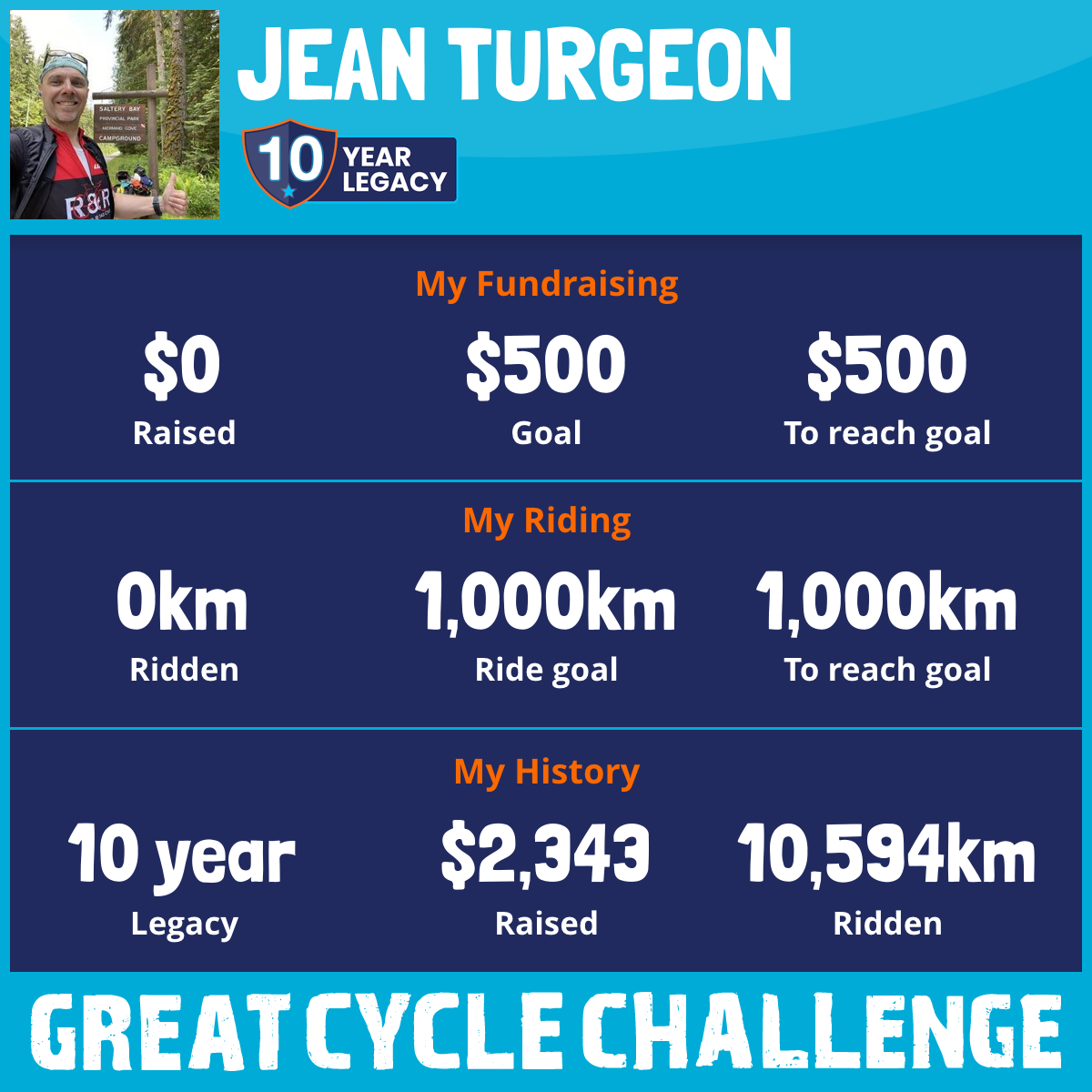 RIding for all of you - My suffering climbing the hills is nothing to what you have had or have to endure... Love Jean