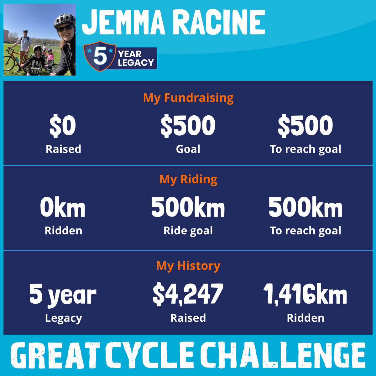 416 km Ridden$504 Raised2023