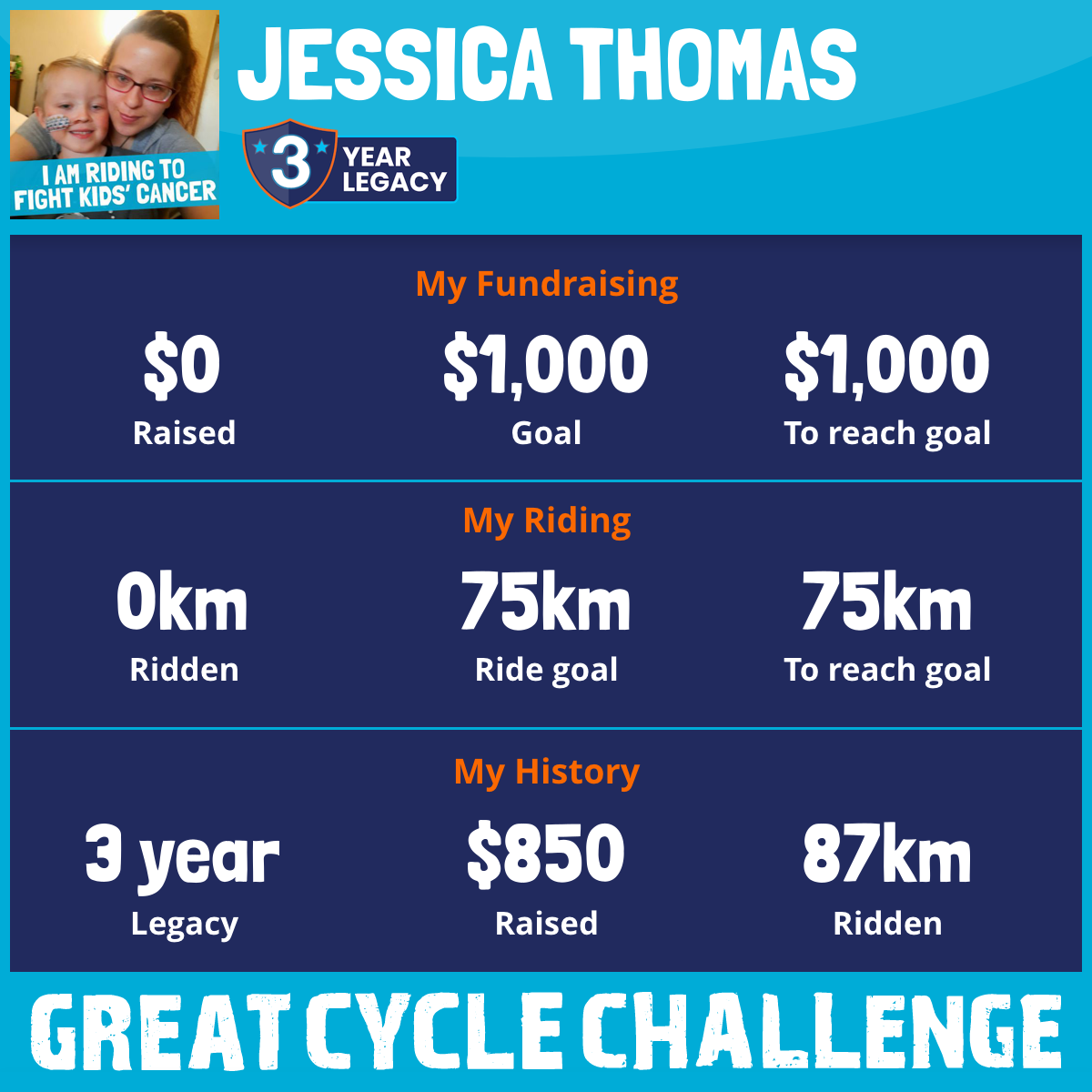 I am riding 75 km for Zayden Thomas the Train. Please sponsor me and support my challenge to fight kids' cancer and save little lives.