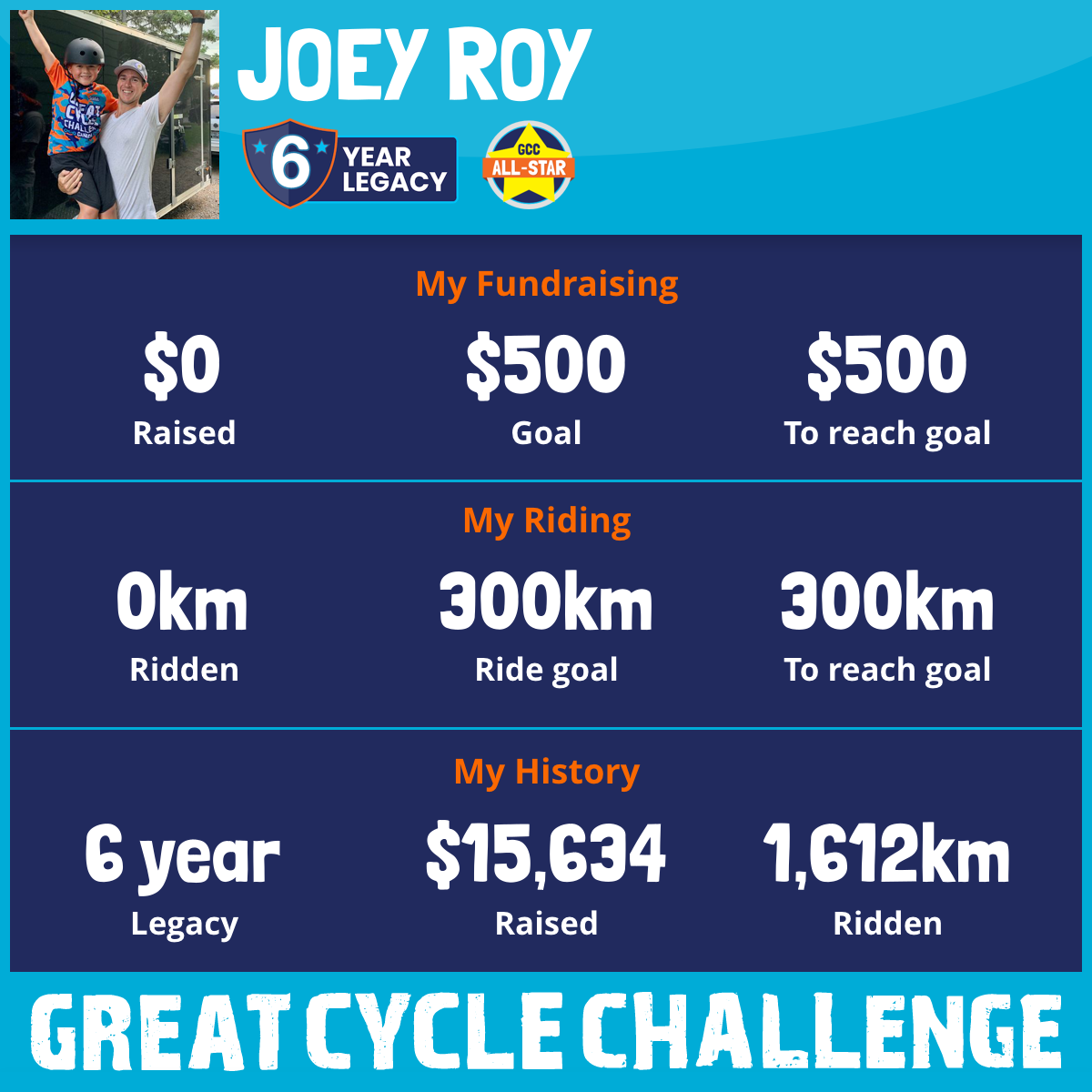 I am riding 300 km in memory of JC Roy. Please sponsor me and support my challenge to fight kids' cancer and save little lives.