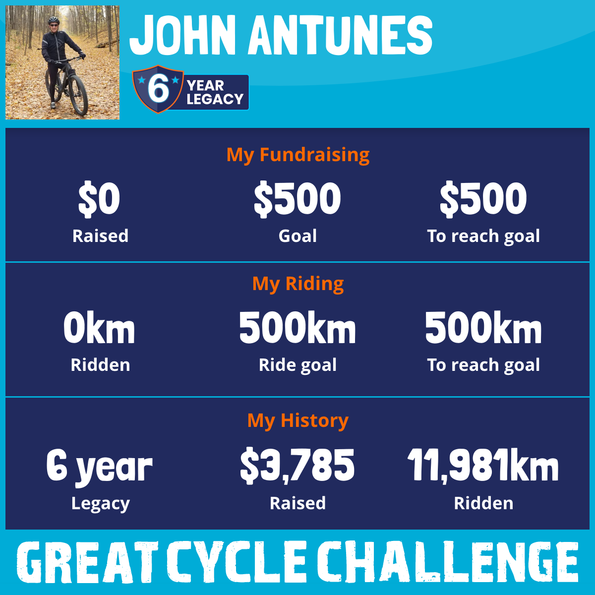 I am riding 500 km for Elizabeth Antunes. Please sponsor me and support my challenge to fight kids' cancer and save little lives.