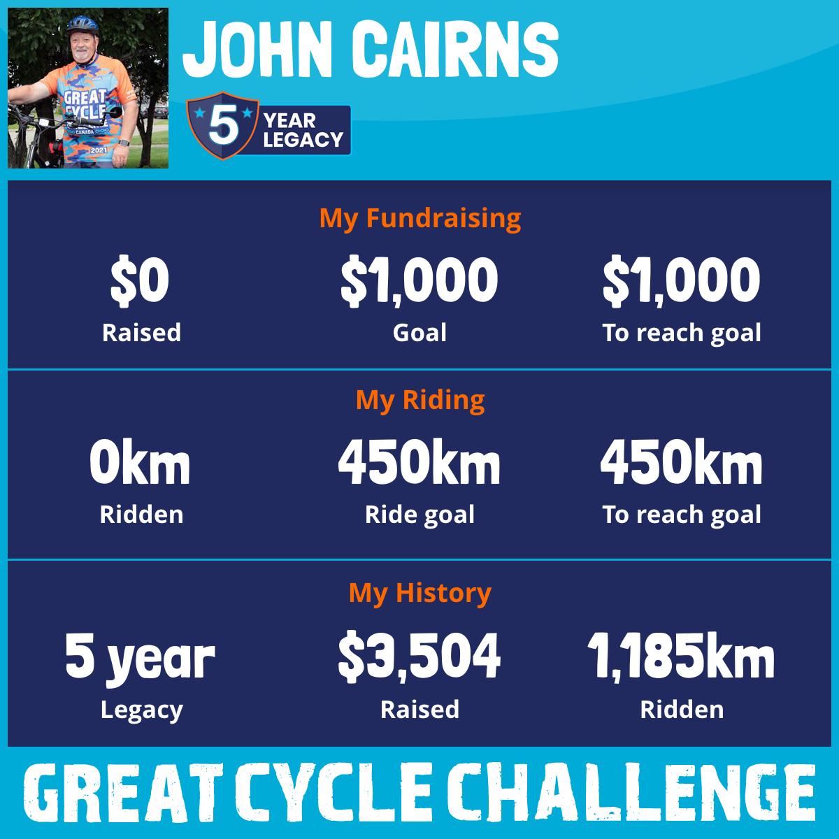 Here I go again, this is my 5th year riding in The Great Cycle Challenge, and I still can't imagine being a parent or grandparent seeing one of your children or grandchildren suffering from Cancer, so this August, I am taking part in the Great Cycle Challenge to fight kids' cancer!