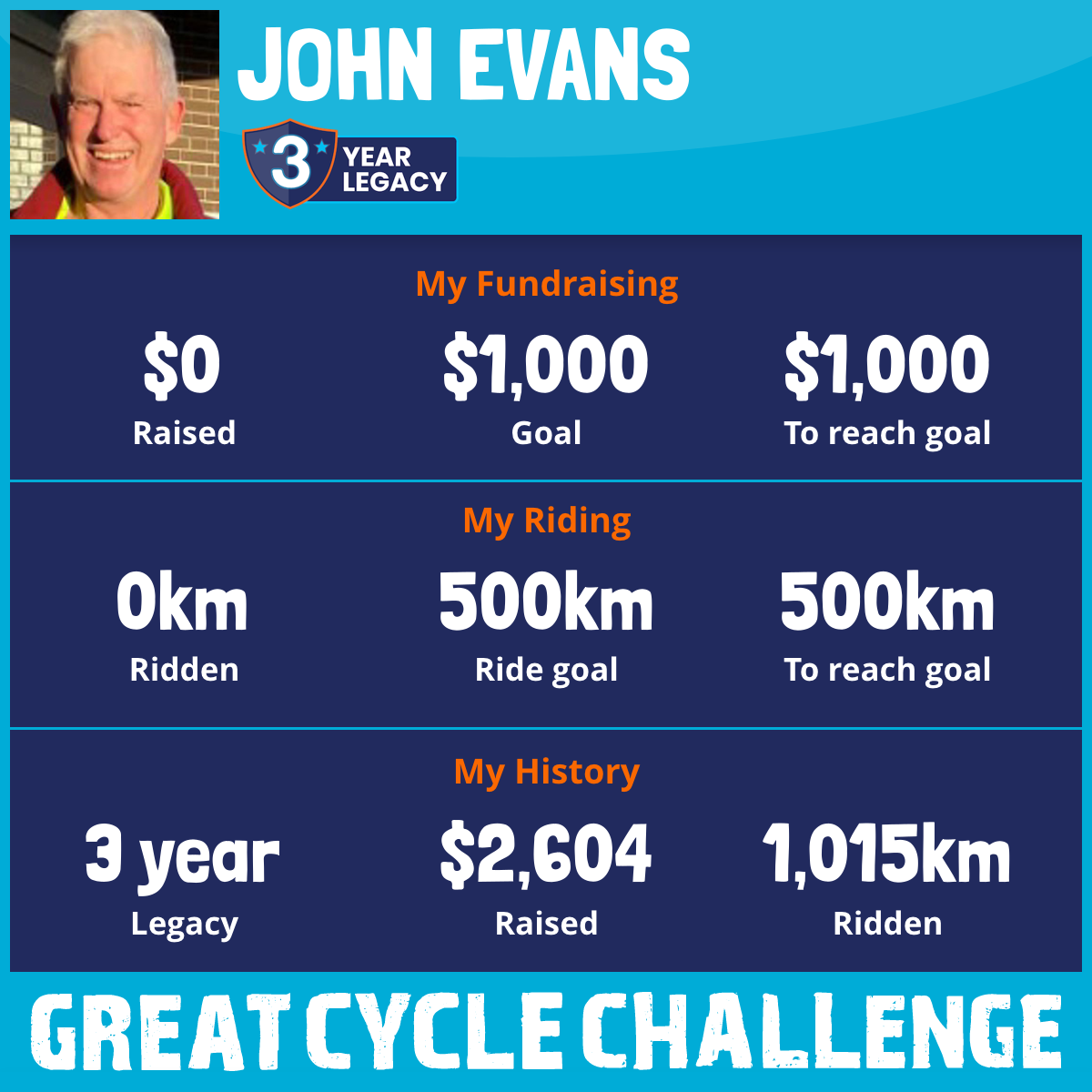 1,015 km Ridden$2,604 Raised2024