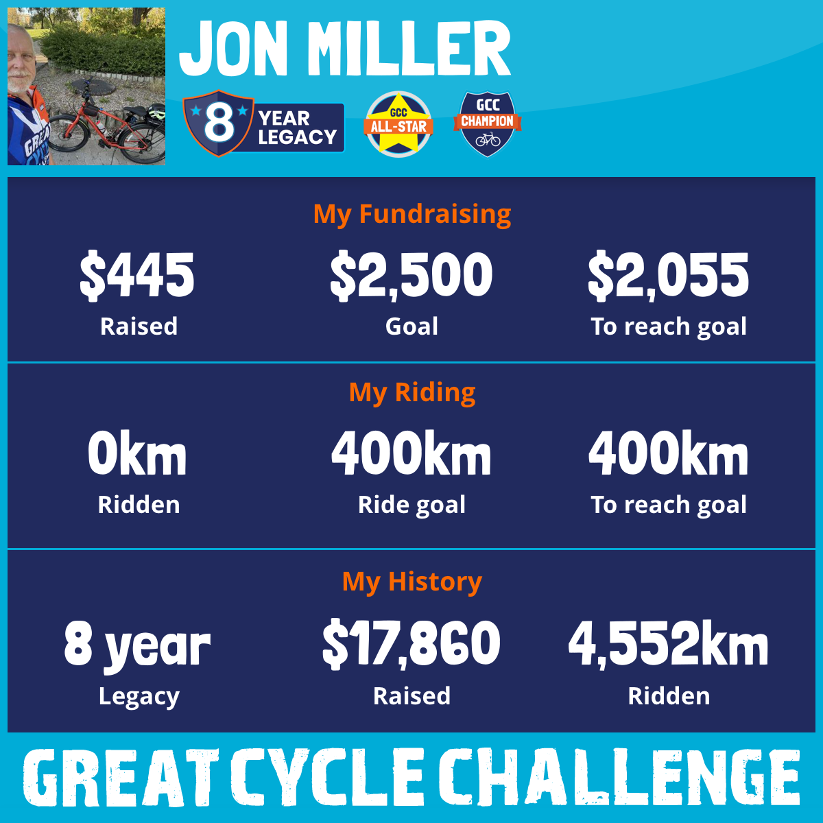 Please support me by making a donation to give these kids the brighter futures they deserve. Visit my page to make your donation today https://greatcyclechallenge.ca/Riders/JonMiller