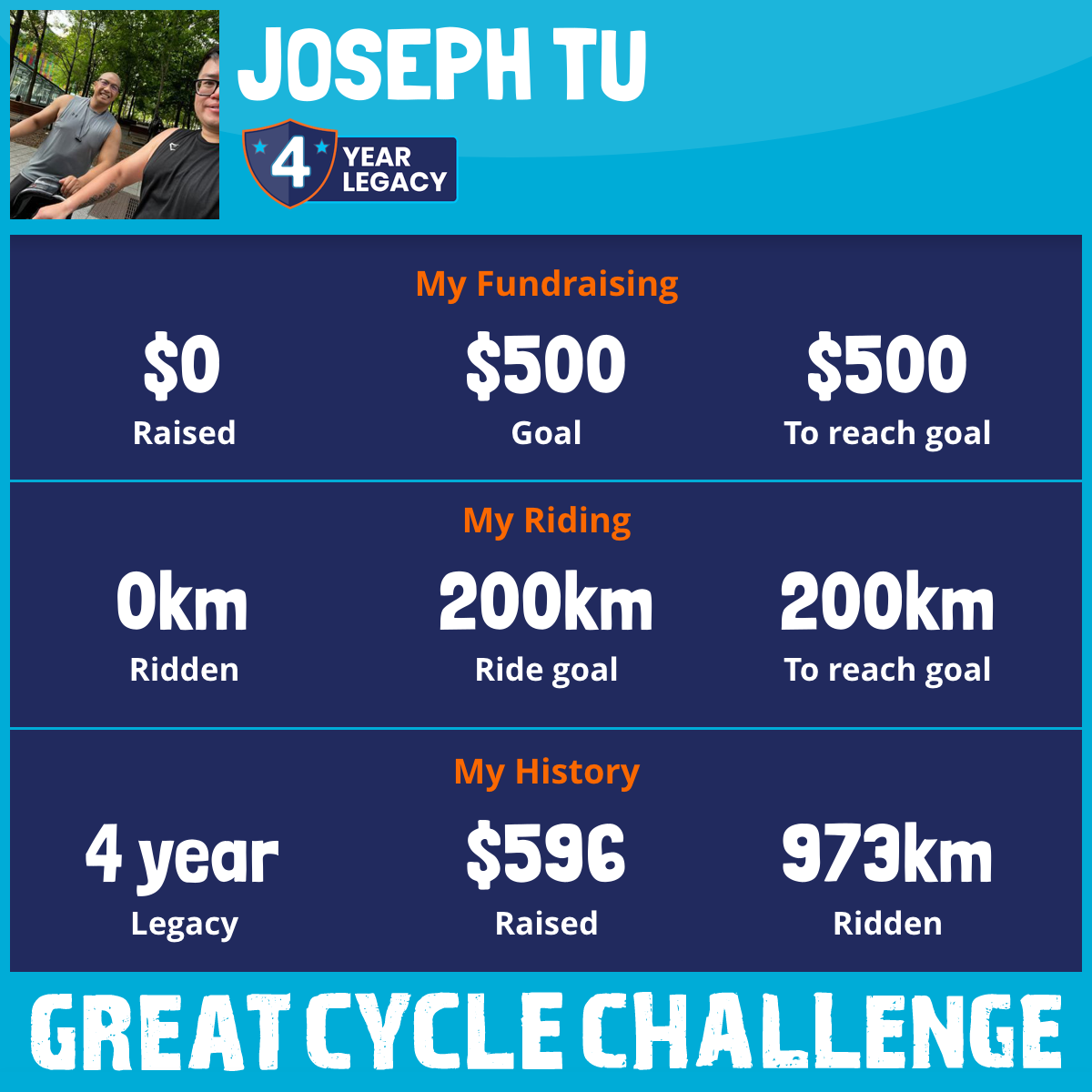 I am riding 200 km in memory of my friend, Dean Mary. Please sponsor me and support my challenge to fight kids' cancer and save little lives.
