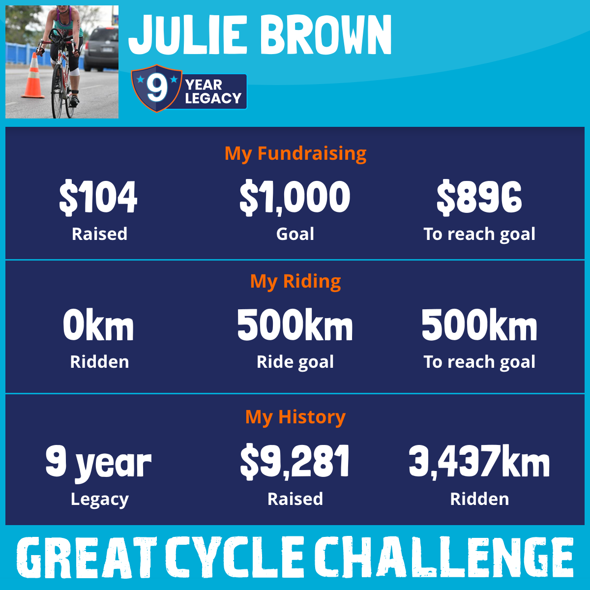 I am riding 500 km for Janet Ellis, Louise McIsaac and Ryker Dale. Please sponsor me and support my challenge to fight kids' cancer and save little lives.
