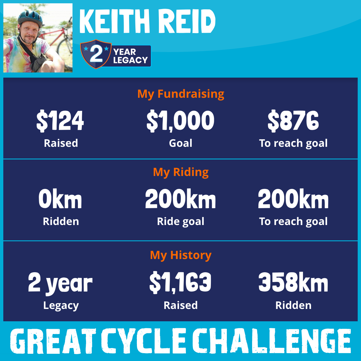 358 km Ridden$1,039 Raised2024