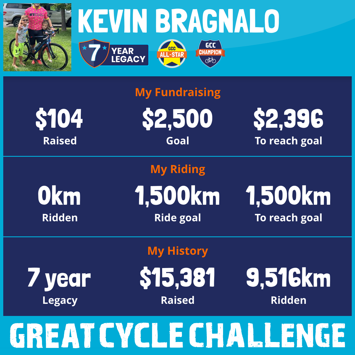 Last year I rode 1,500km with all the support of family and friends. What kept pushing me is what I was riding for. This year I’ll be riding 1,500km with adding 500 push-ups. I’ll also have my 6 year old son ridding his bike this year so he will join me on some of my runs! My mom passed away from cancer 2 weeks after my wedding. My dad passed away when I was a 1 year old. Even tho I’m riding for kids with cancer just the disease itself sits in my mind. Having two kids myself I couldn’t imagine going through the pain that families have to go through with cancer treatments.