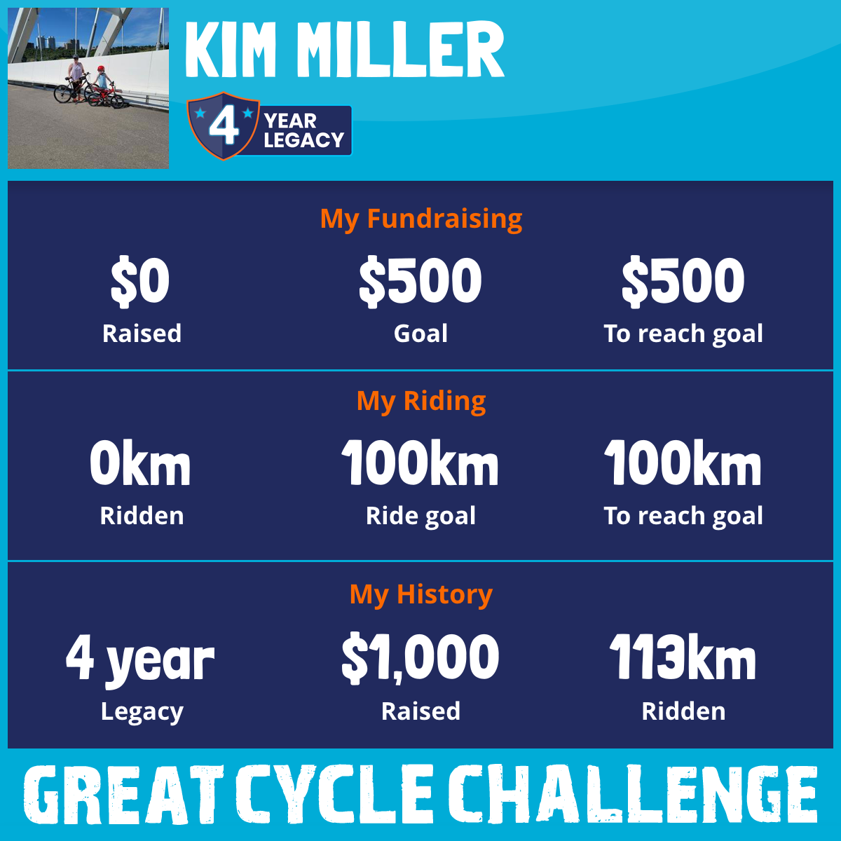 113 km Ridden$1,000 Raised2021