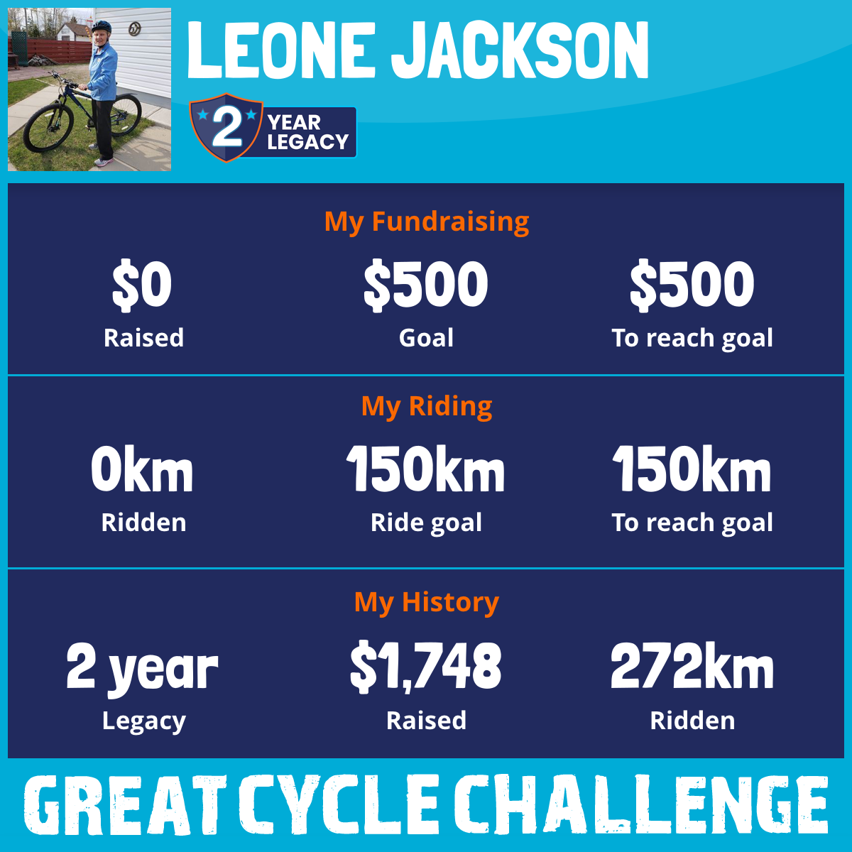 319 km Ridden$1,888 Raised2026