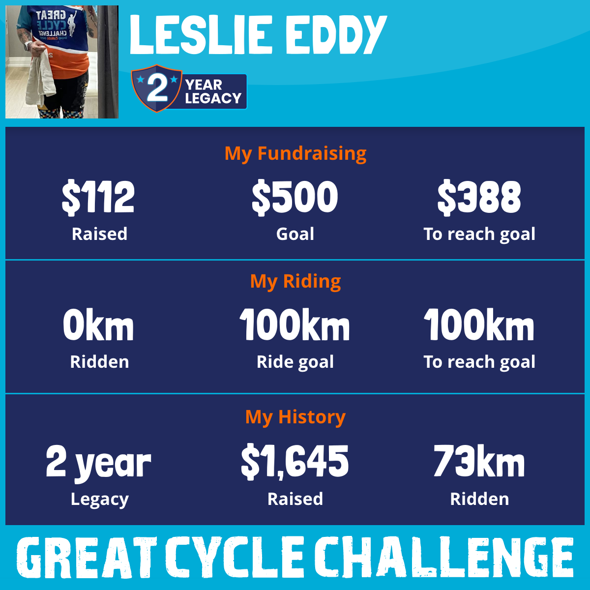 73 km Ridden$1,533 Raised2024