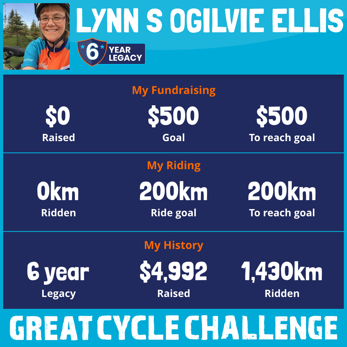 This August, I am taking part in the Great Cycle Challenge to fight kids' cancer! This is my 6th year participating in this Fundraiser!