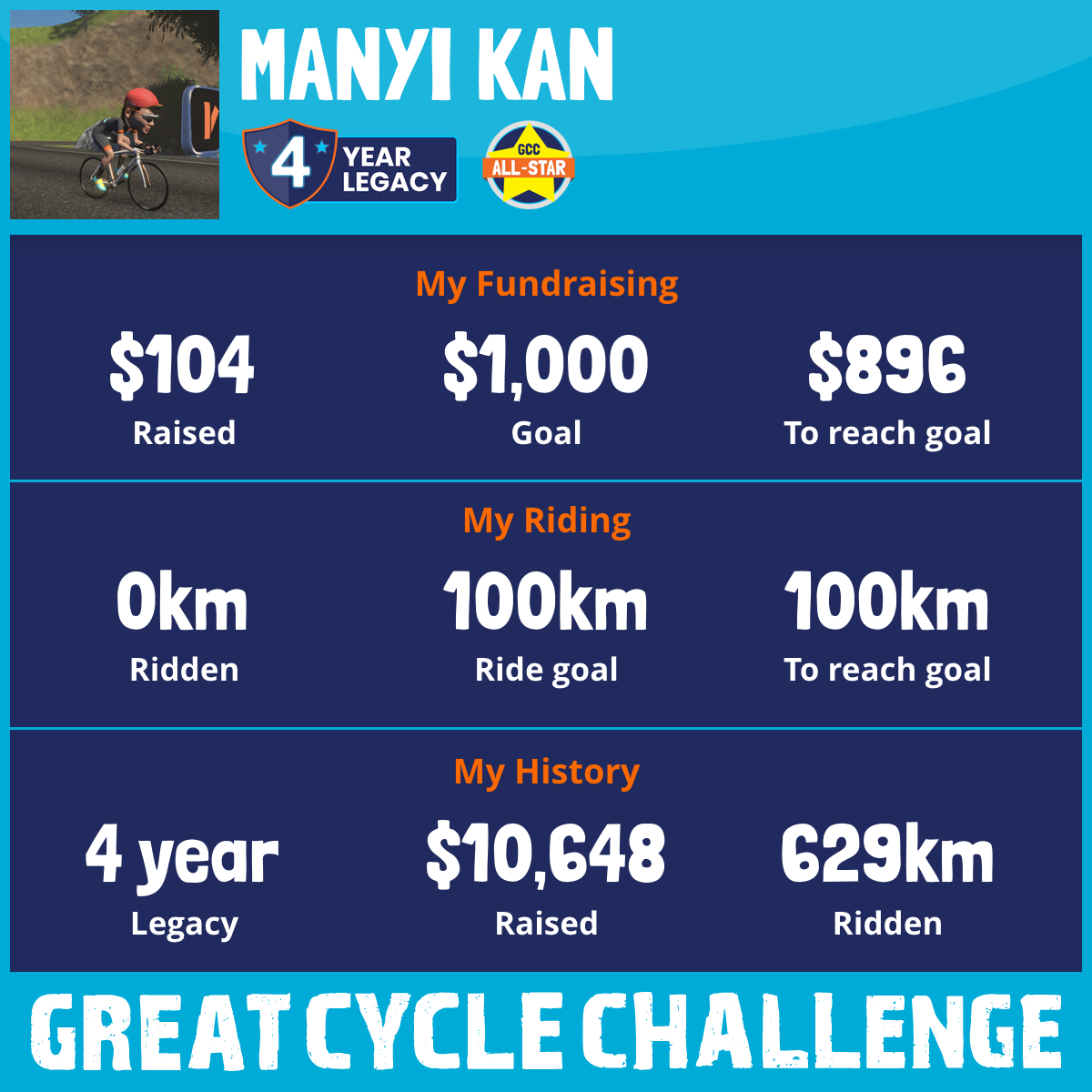 100 km Ridden$3,139 Raised2025