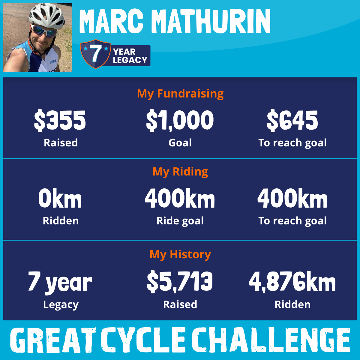 I am riding 400 km for my sister, Andree Mathurin. Please sponsor me and support my challenge to fight kids' cancer and save little lives.