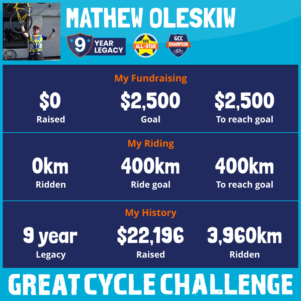 505 km Ridden$3,346 Raised2020