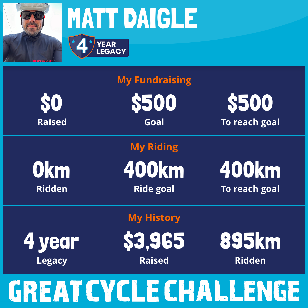 301 km Ridden$1,579 Raised2023