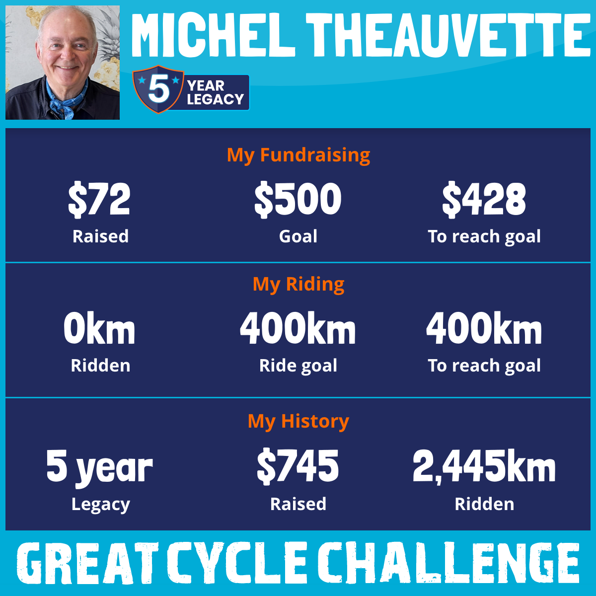 1,149 km Ridden$72 Raised2022