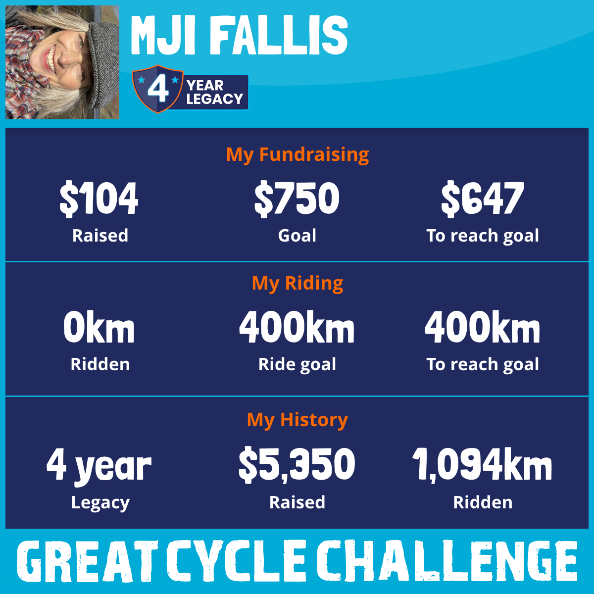 Yahoo! I am taking part in the Great Cycle Challenge to fight kids' cancer. It’s my 4th year riding & each year I wonder if my goal is stretching it too much. I am generally a dare devil .. so it fits with my personality to push myself! Please join me in meeting my goal.