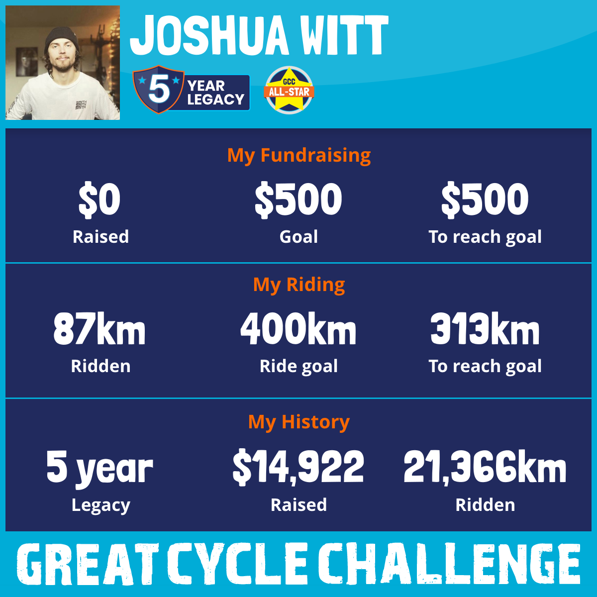 4,370 km Ridden$4,763 Raised2021