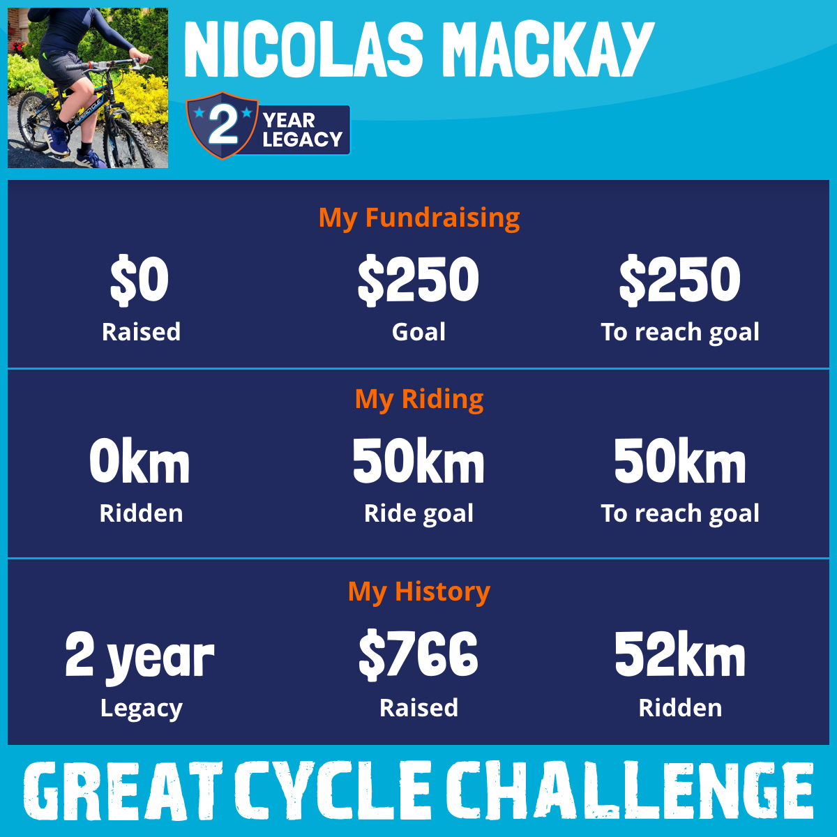 I am riding 50 km for my cousin, Chad Gamblin. Please sponsor me and support my challenge to fight kids' cancer and save little lives.