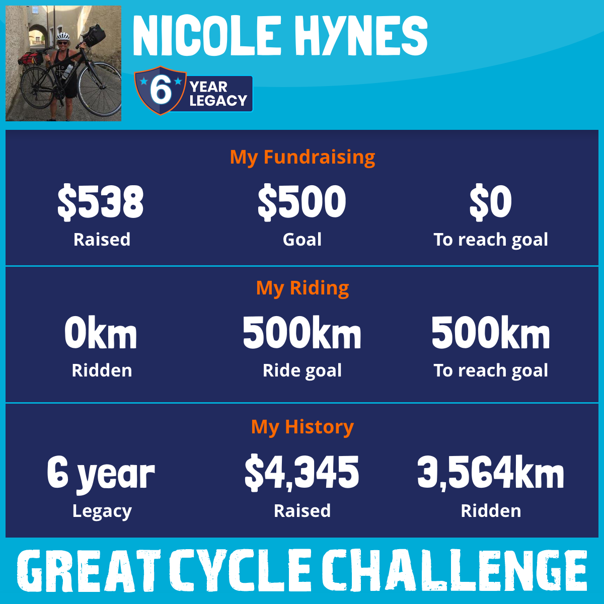 539 km Ridden$1,036 Raised2023