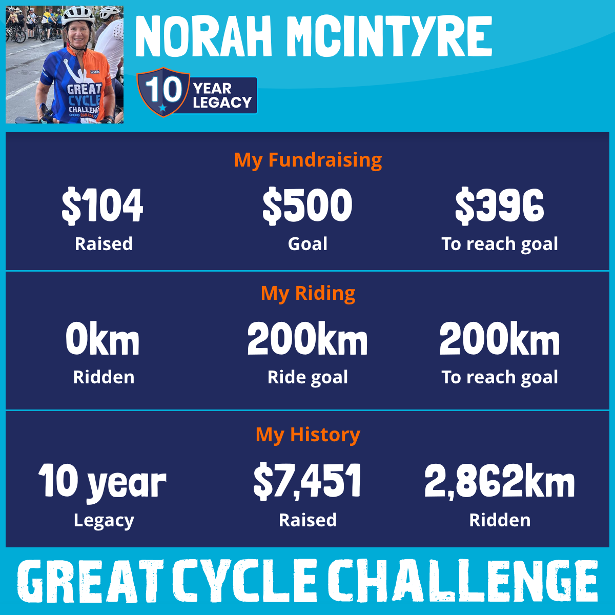 This August, I am taking part in the Great Cycle Challenge to fight kids' cancer for the 10th year!
