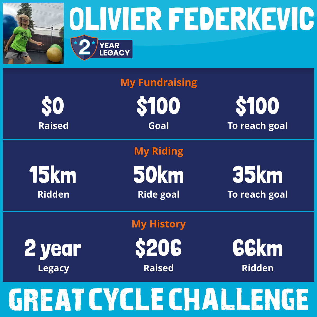 I am riding 50 km in memory of Evelyn Roy and Ronan Thompson. Please sponsor me and support my challenge to fight kids' cancer and save little lives.