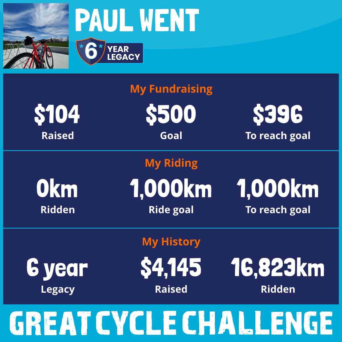In August 2025, I am again taking part in the Great Cycle Challenge to fight kids' cancer!