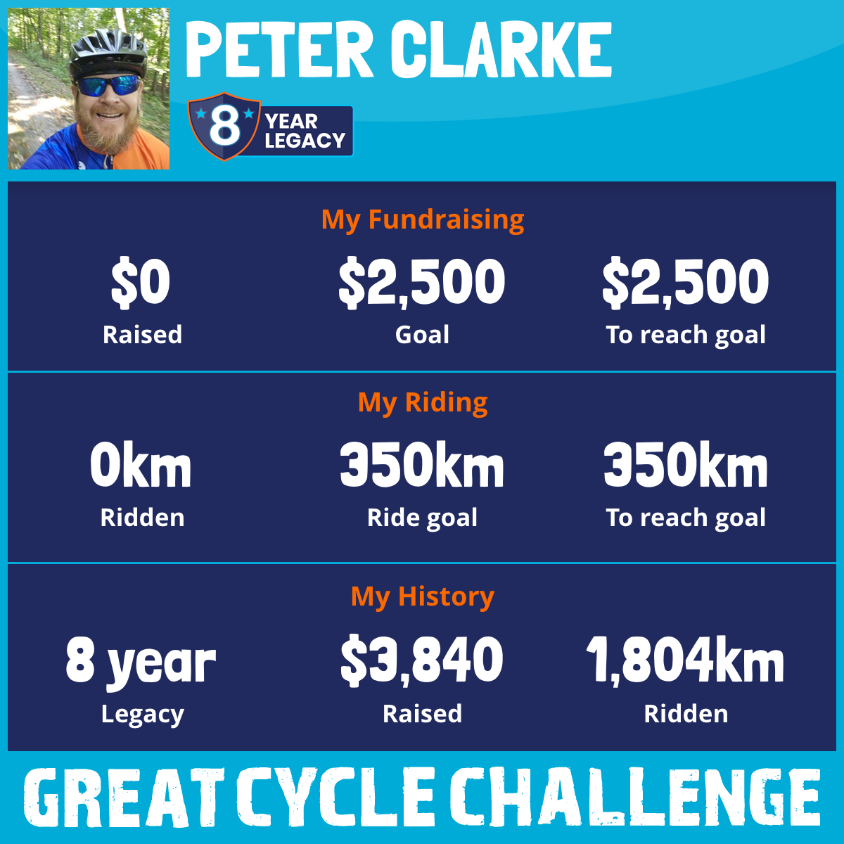 This AUGUST, I am taking part in the Great Cycle Challenge to fight kids' cancer! I will be riding 300 KM in the month of AUGUST.