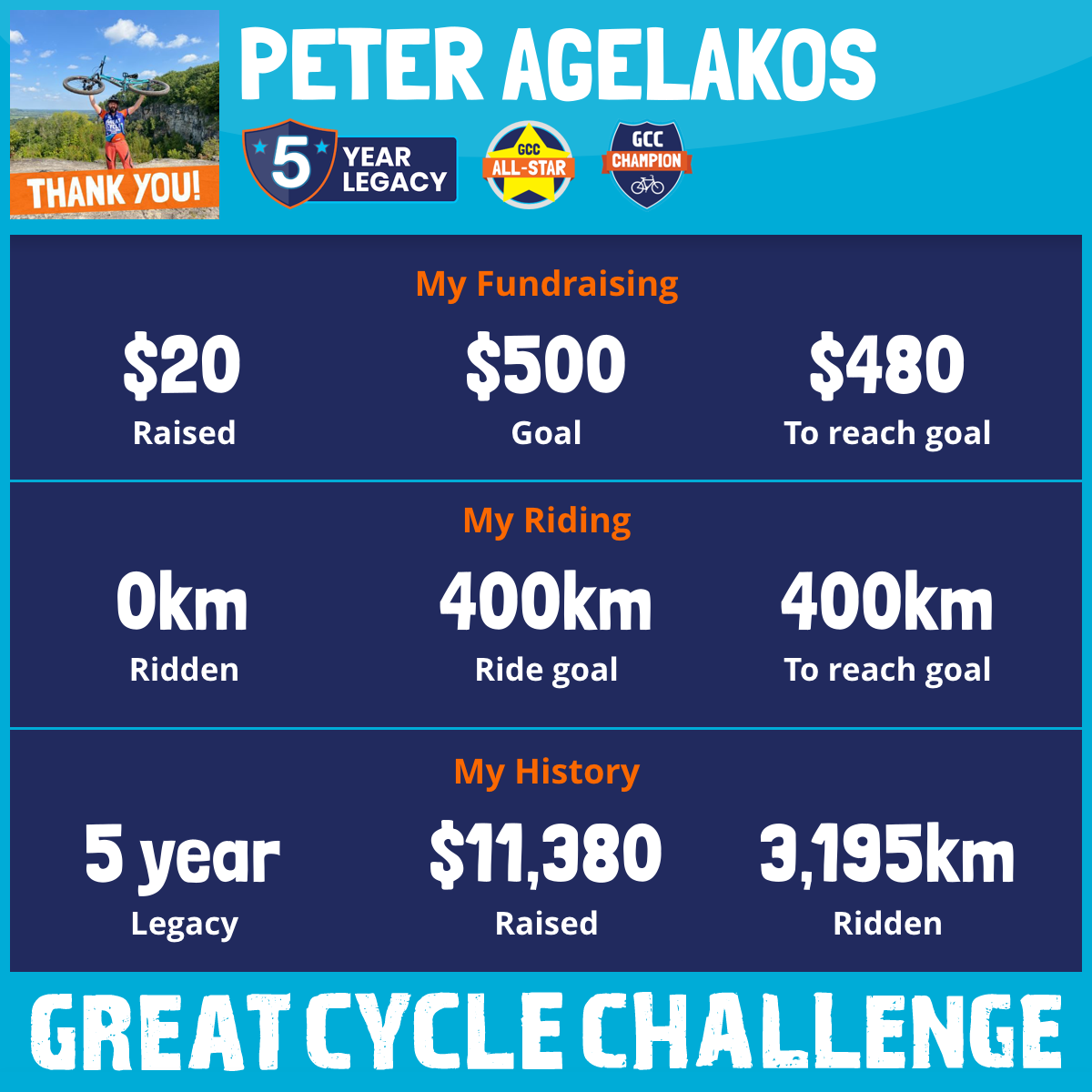 I am riding 400 km for Peter. Please sponsor me and support my challenge to fight kids' cancer and save little lives.