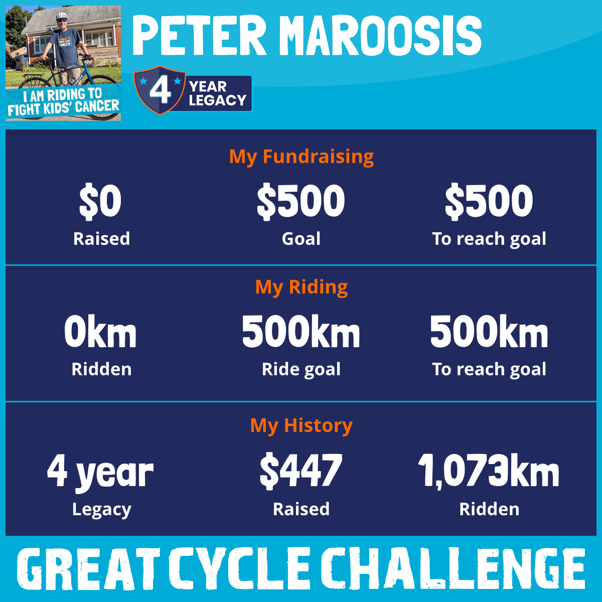 I am riding 500 km in memory of Joan Maroosis. Please sponsor me and support my challenge to fight kids' cancer and save little lives.