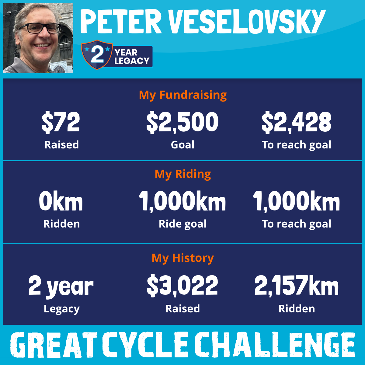 2,157 km Ridden$2,950 Raised2024