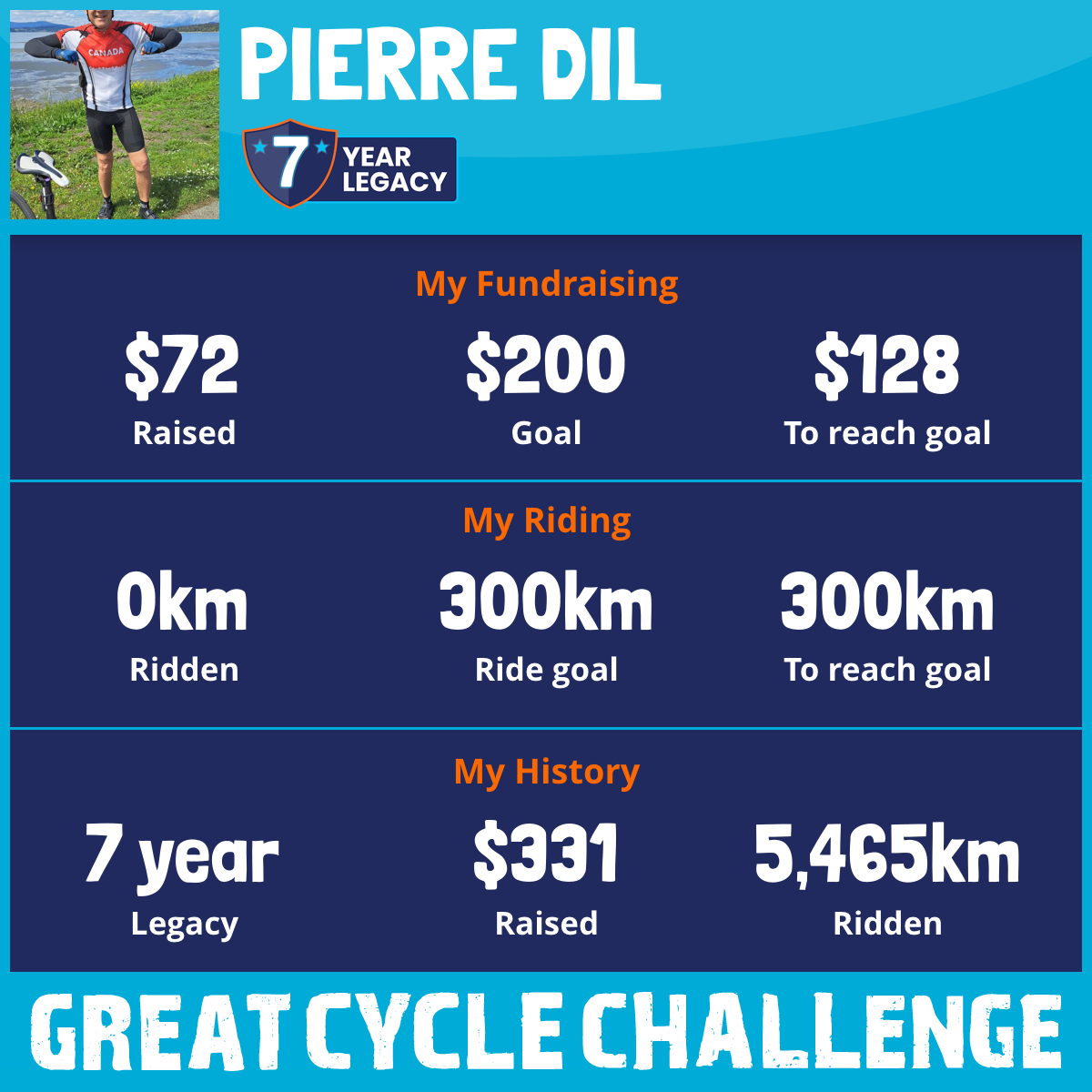 1,143 km Ridden$72 Raised2026