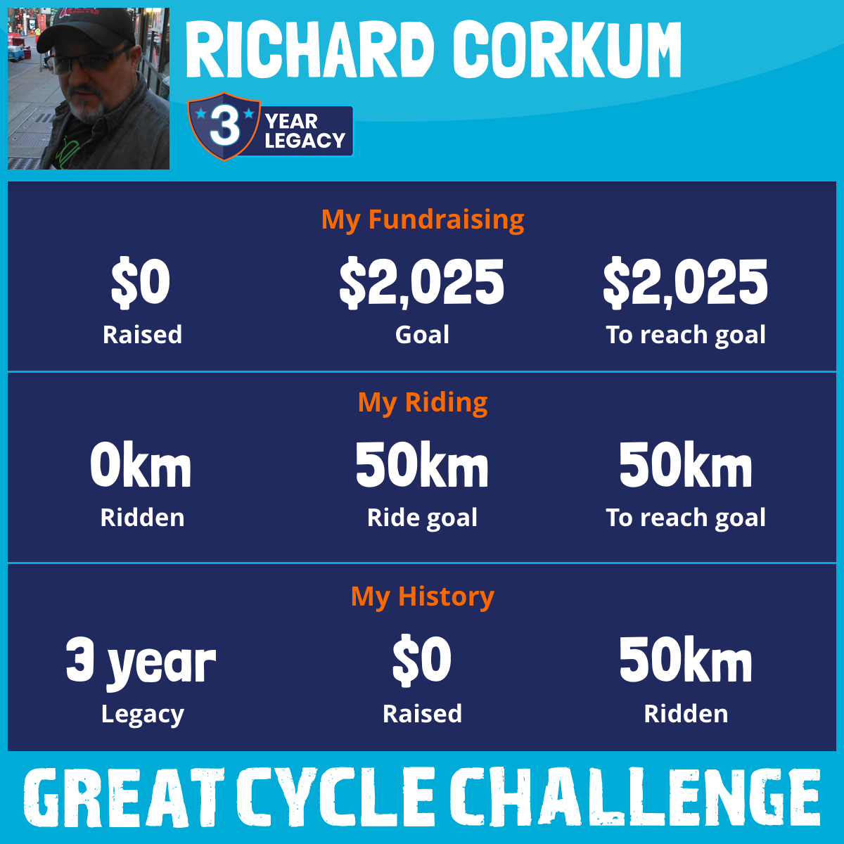 I am riding 50 km in memory of my wife, Cindy. Please sponsor me and support my challenge to fight kids' cancer and save little lives.