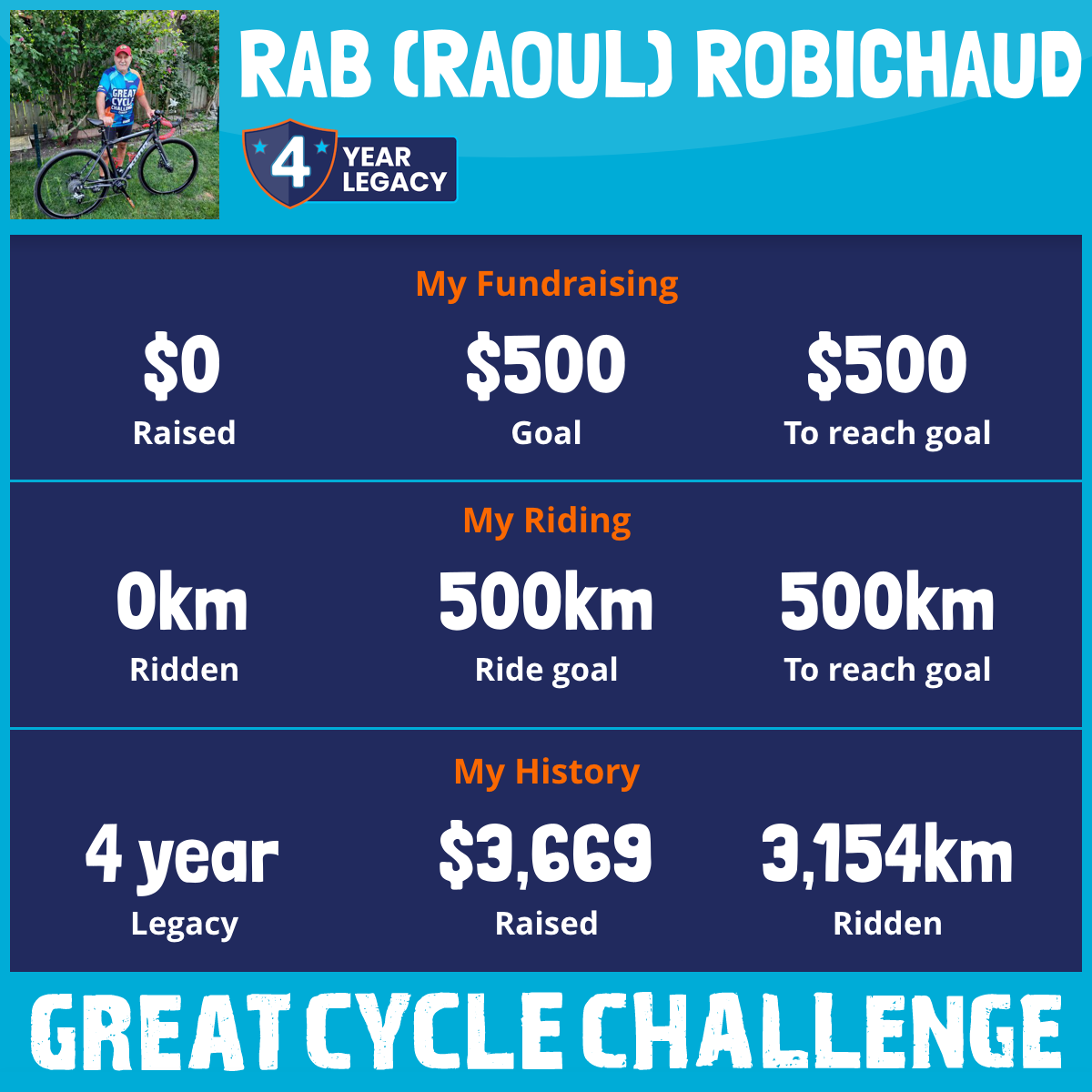 This is my 4th year taking part in the Great Cycle Challenge to fight kids' cancer!