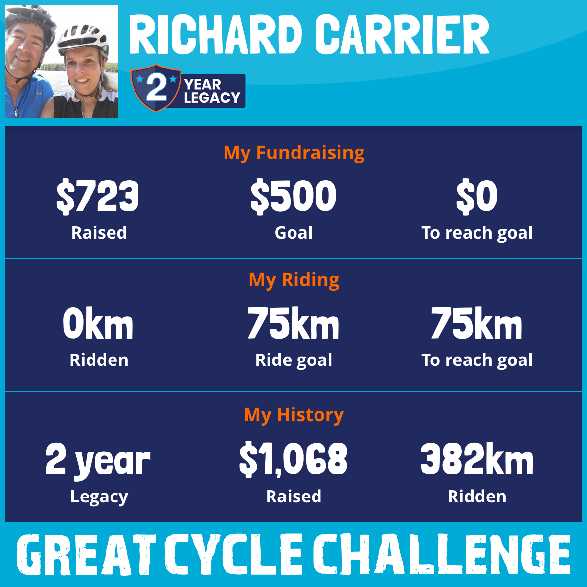 I am riding 75 km in memory of my mum, Nicole Carrier. Please sponsor me and support my challenge to fight kids' cancer and save little lives.