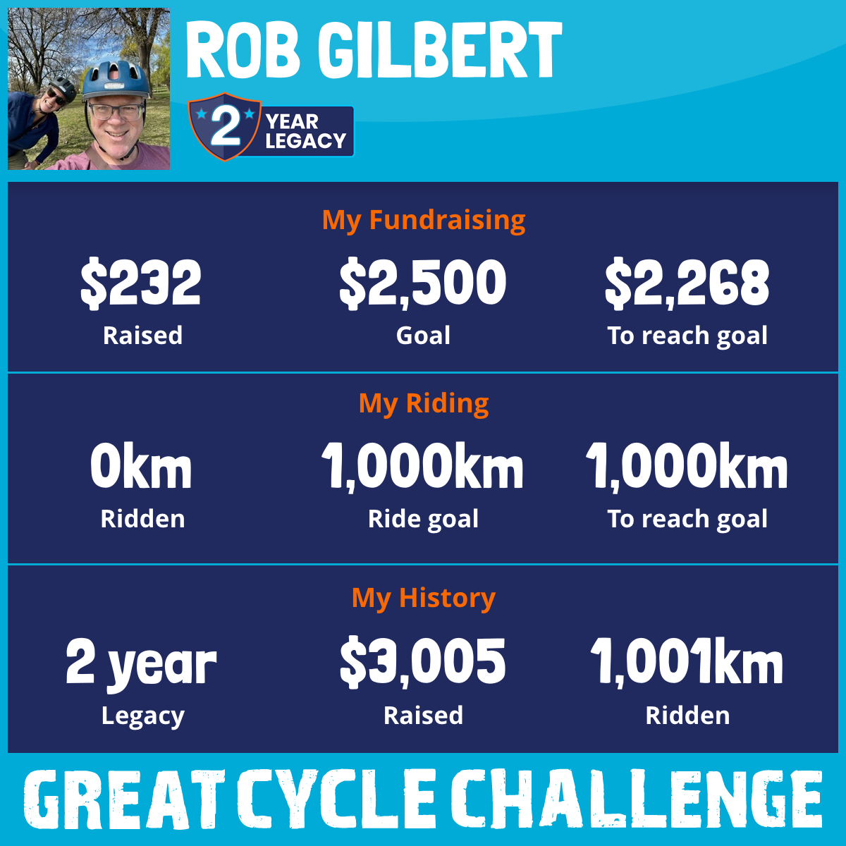1,000 km Ridden$2,859 Raised2025