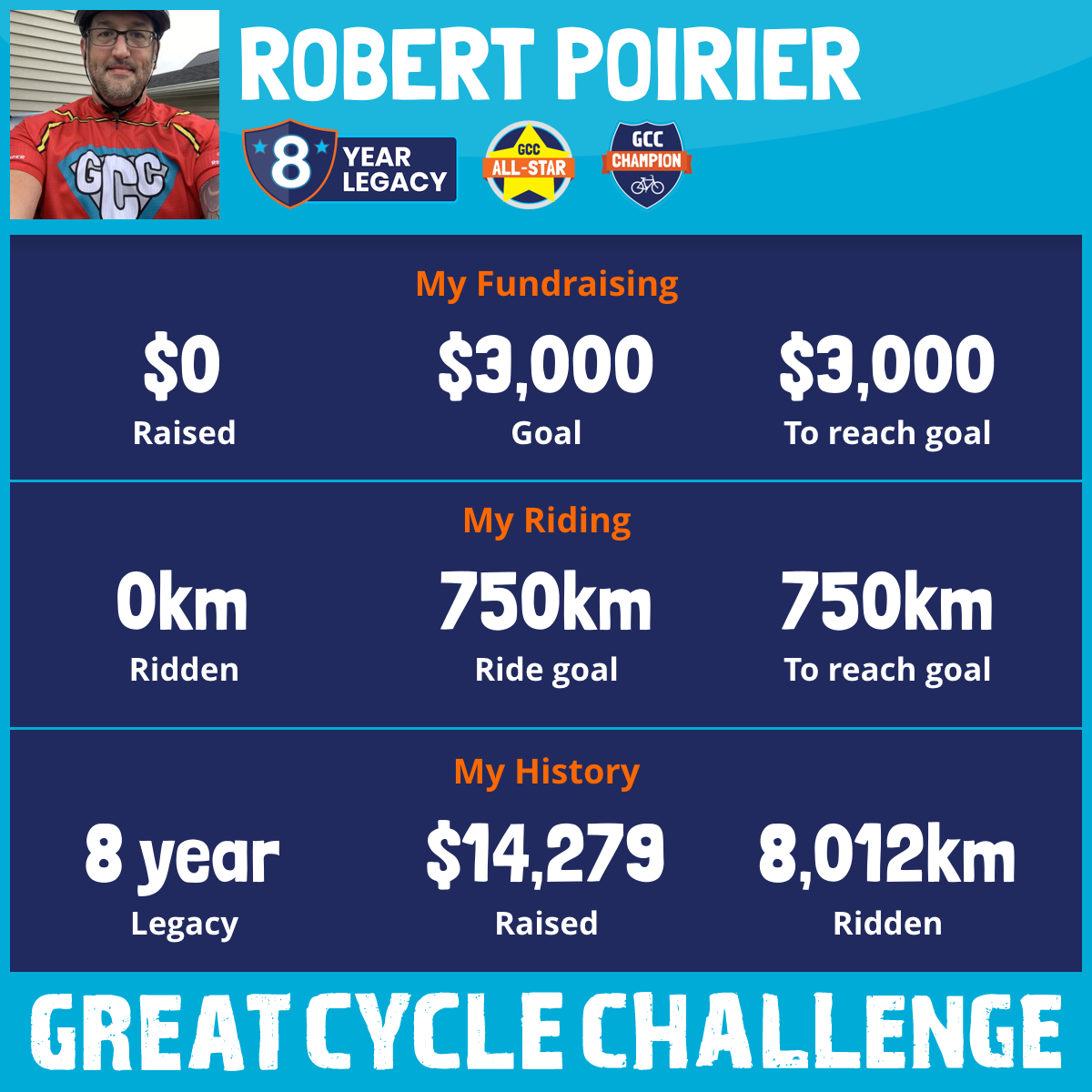 1,204 km Ridden$1,889 Raised2021
