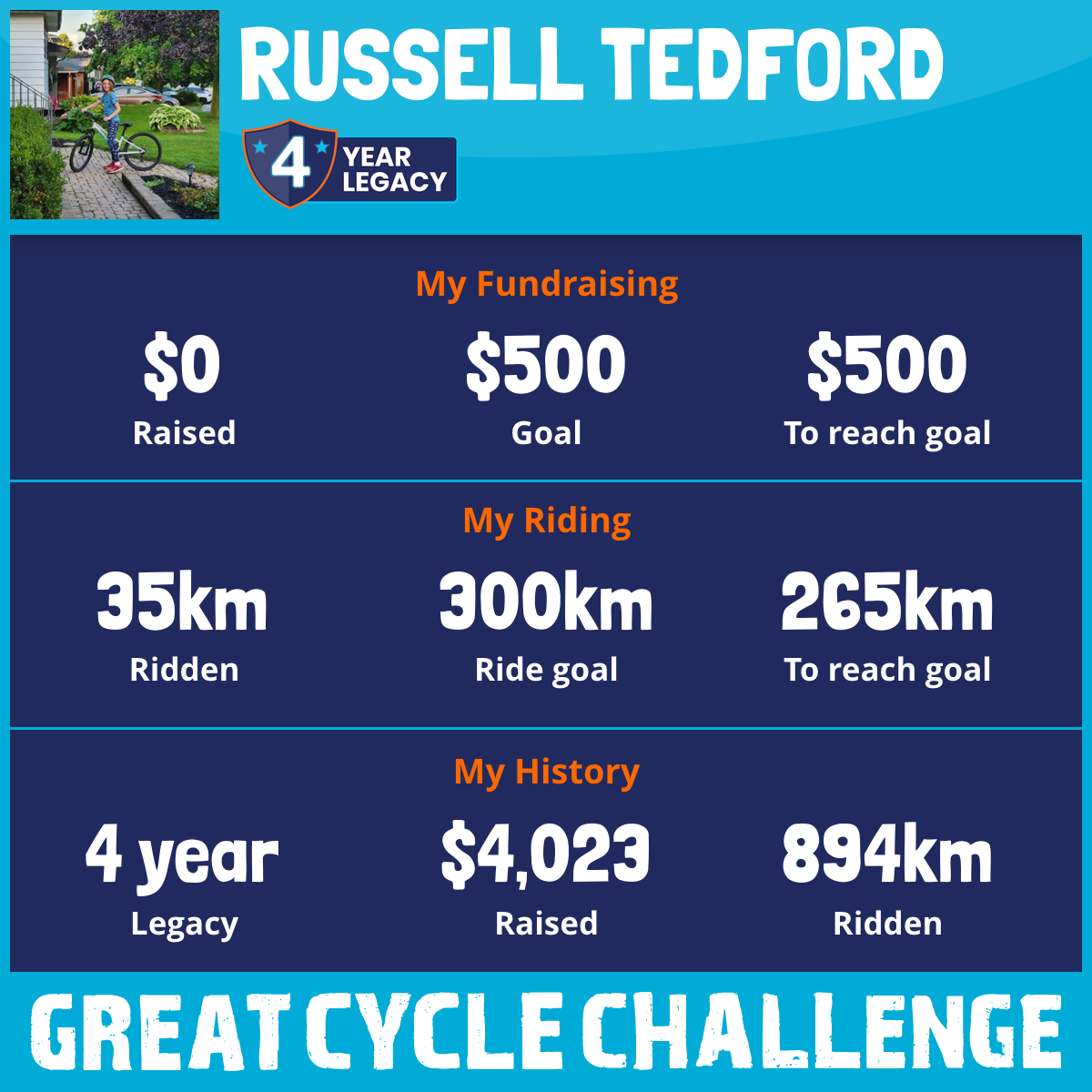 I am riding 300 km for My Poppa. Please sponsor me and support my challenge to fight kids' cancer and save little lives.