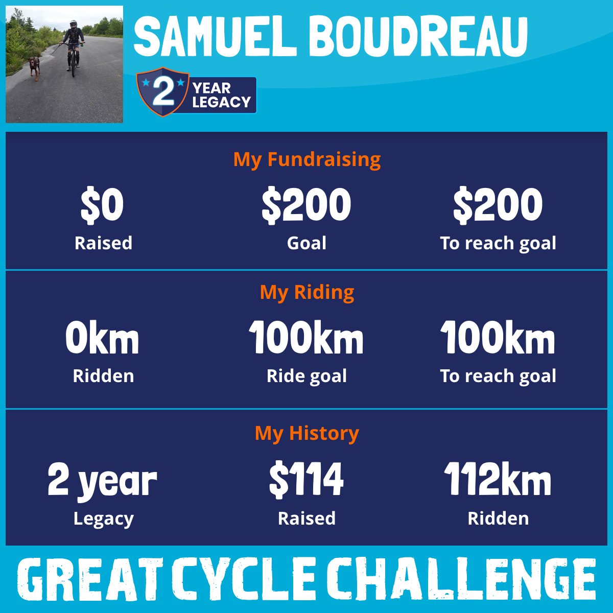 I am riding 100 km in memory of my uncle, Maurice Boudreau. Please sponsor me and support my challenge to fight kids' cancer and save little lives.