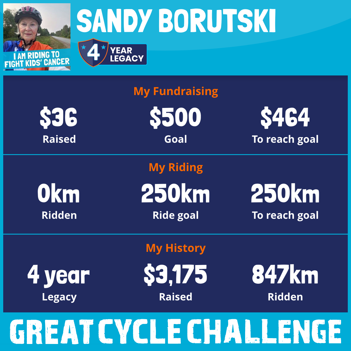 252 km Ridden$1,800 Raised2025