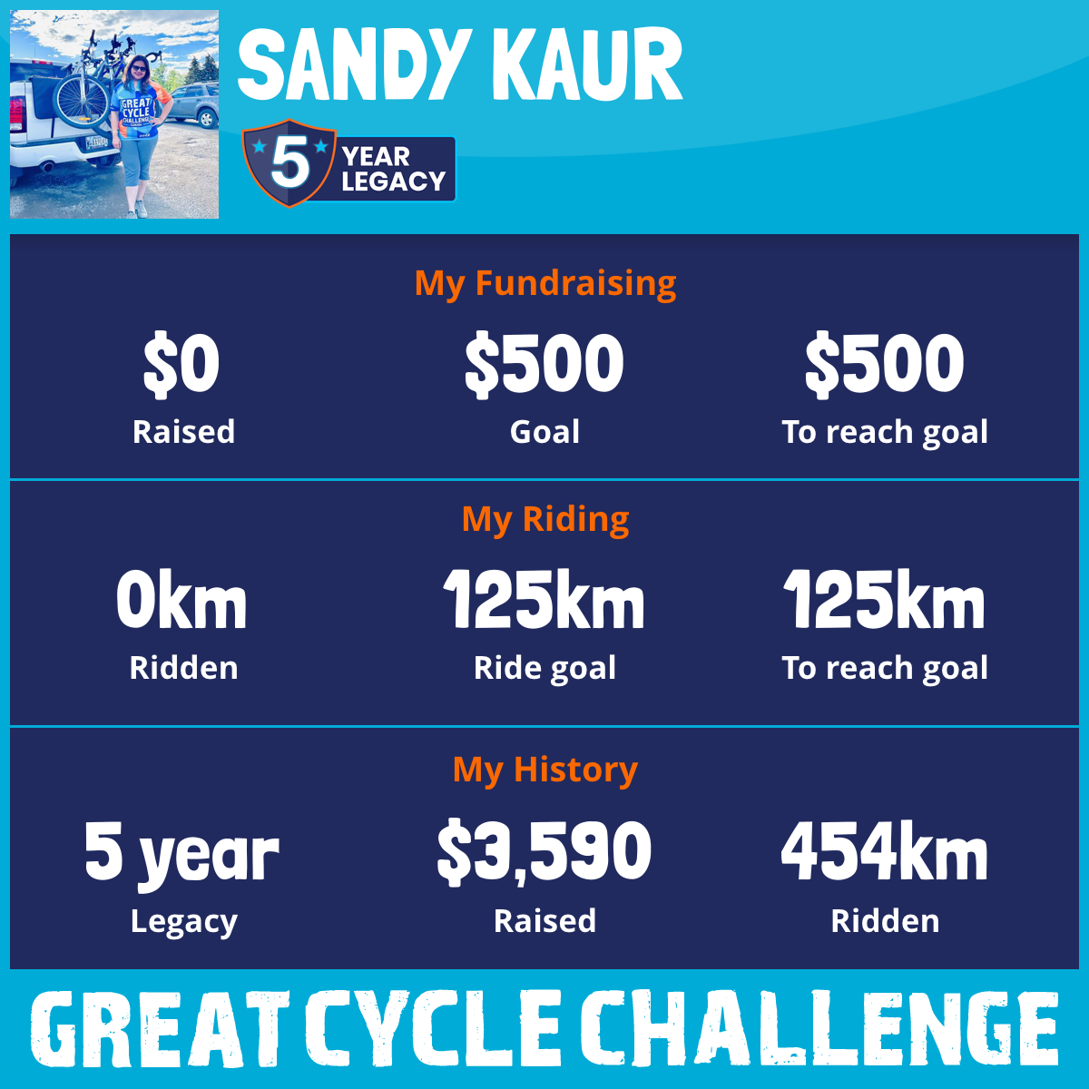 127 km Ridden$1,293 Raised2022