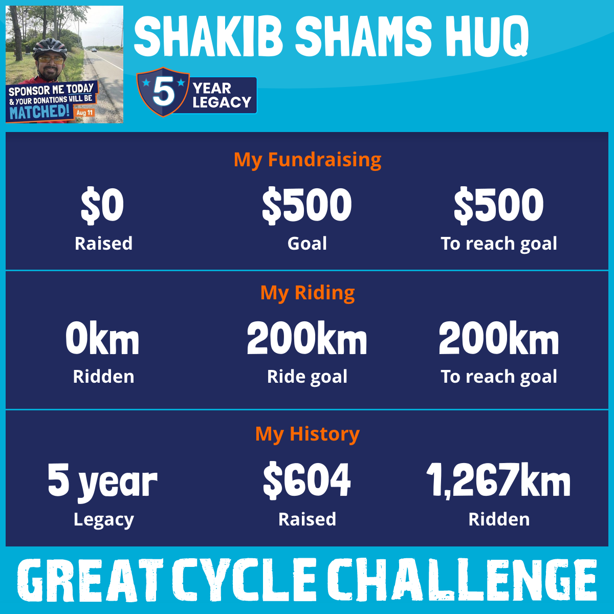 I am riding 150 km for Shakib. Please sponsor me and support my challenge to fight kids' cancer and save little lives.