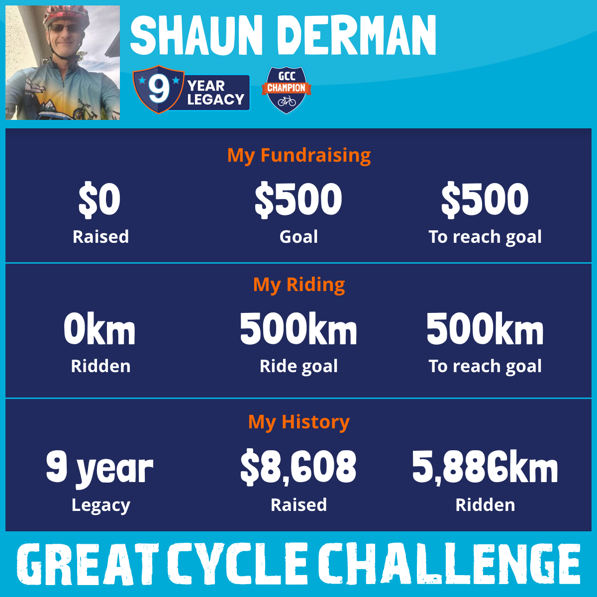 I am riding 500 km in memory of my friend, Darrell Harsh. Please sponsor me and support my challenge to fight kids' cancer and save little lives.