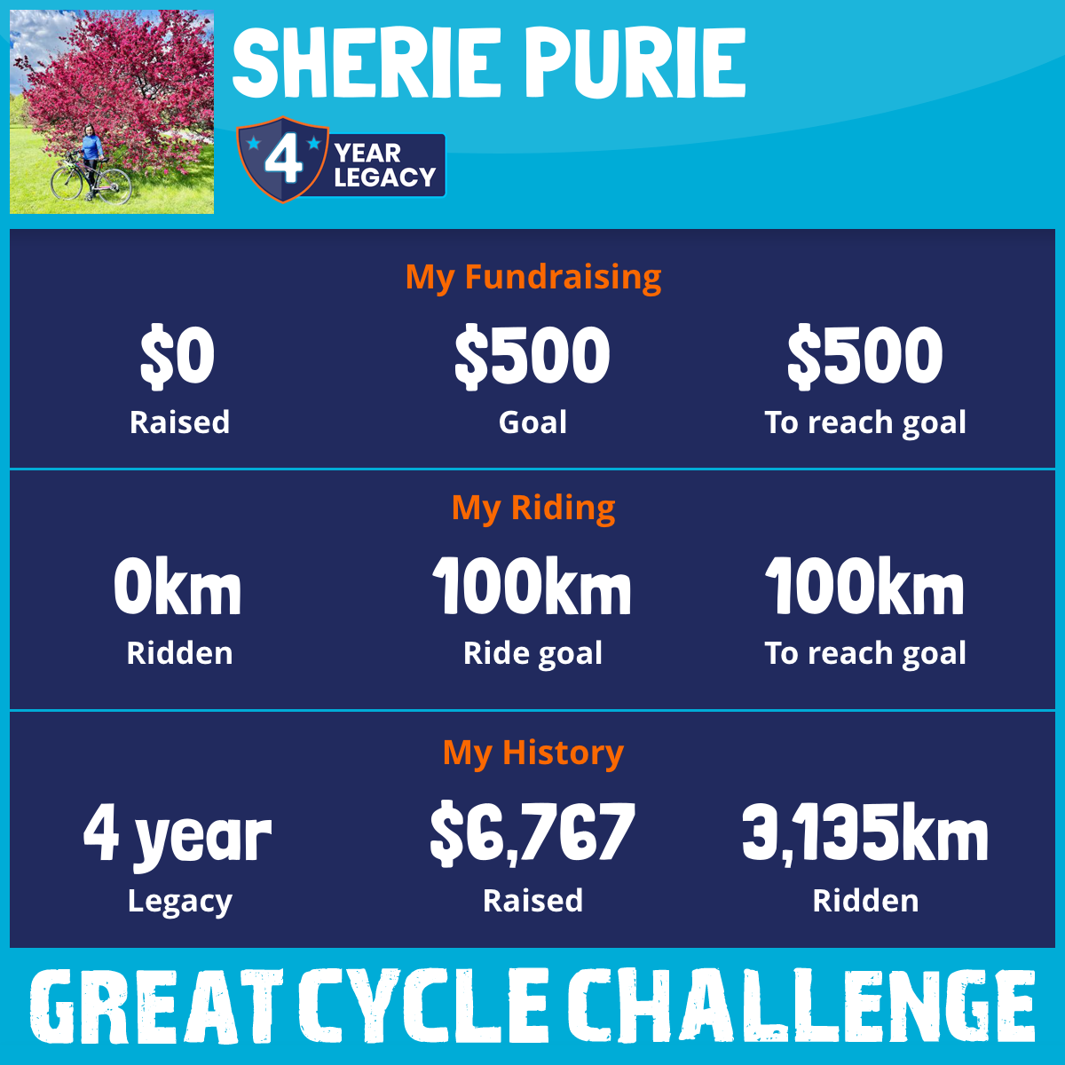 987 km Ridden$1,441 Raised2023