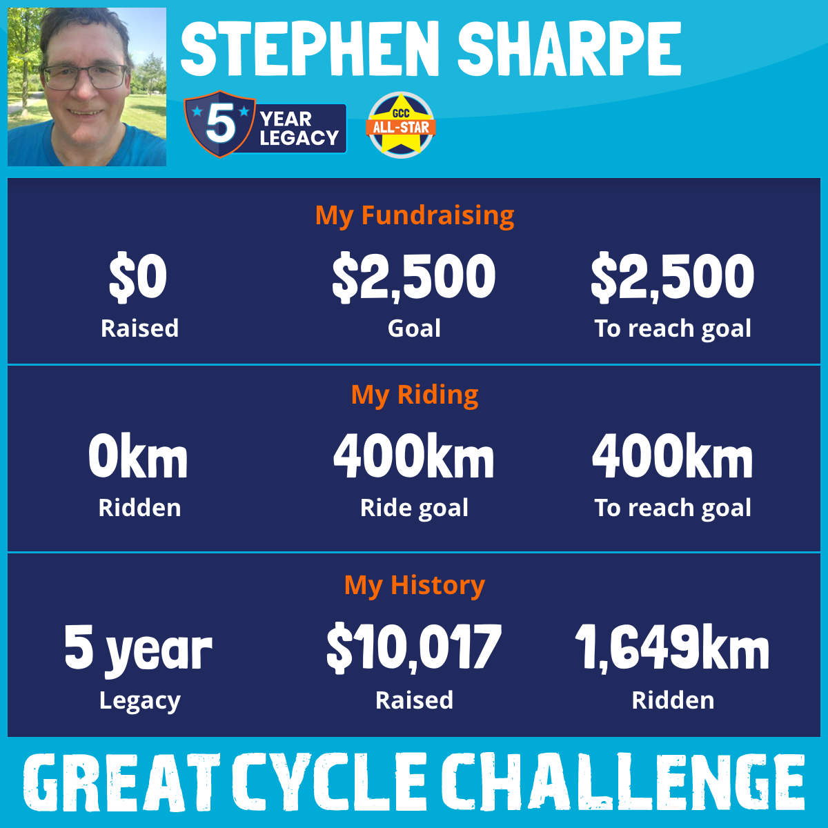 Welcome to my page for the Great Cycle Challenge.