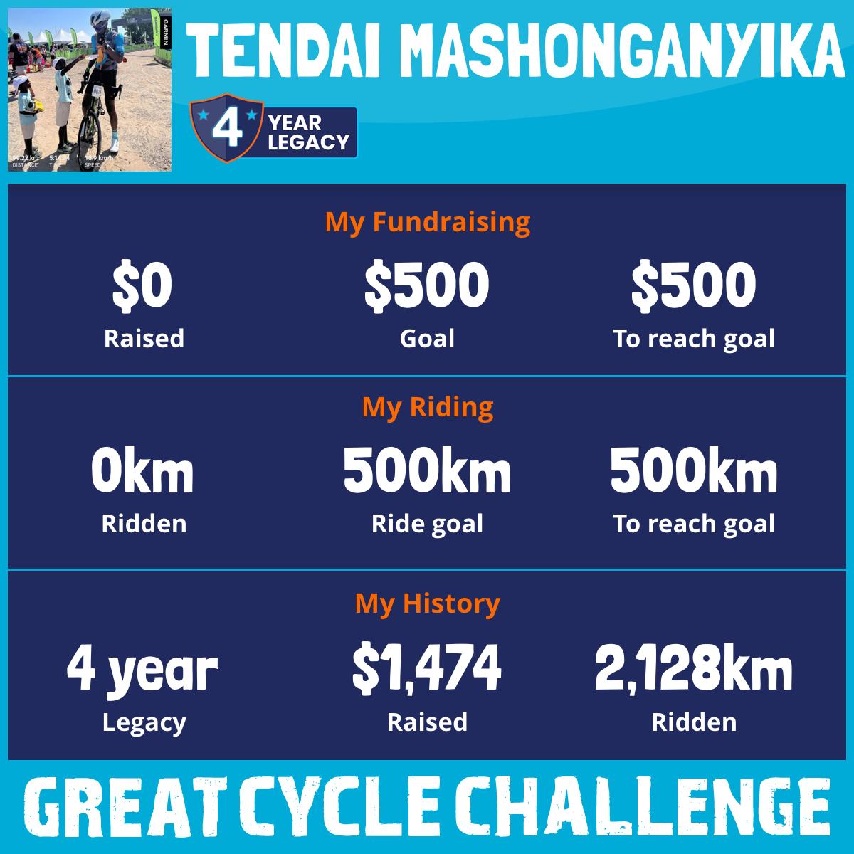 1,032 km Ridden$1,127 Raised2022